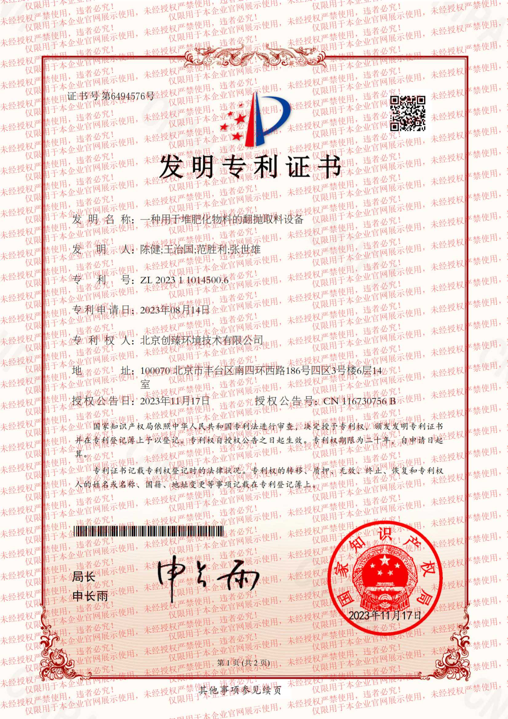 公司先后取得了北京市中关村高新技术企业认证、国家级高新技术企业认证以及体系认证等资质及荣誉。公司拥有多项知识产权,核心技术及产品,包括:集成式智能发酵装备、智能取料机器人、智能翻抛机器人、智能操作系统等,被北京市经信委认定为北京市专精特新中小企业、创新型中小企业。